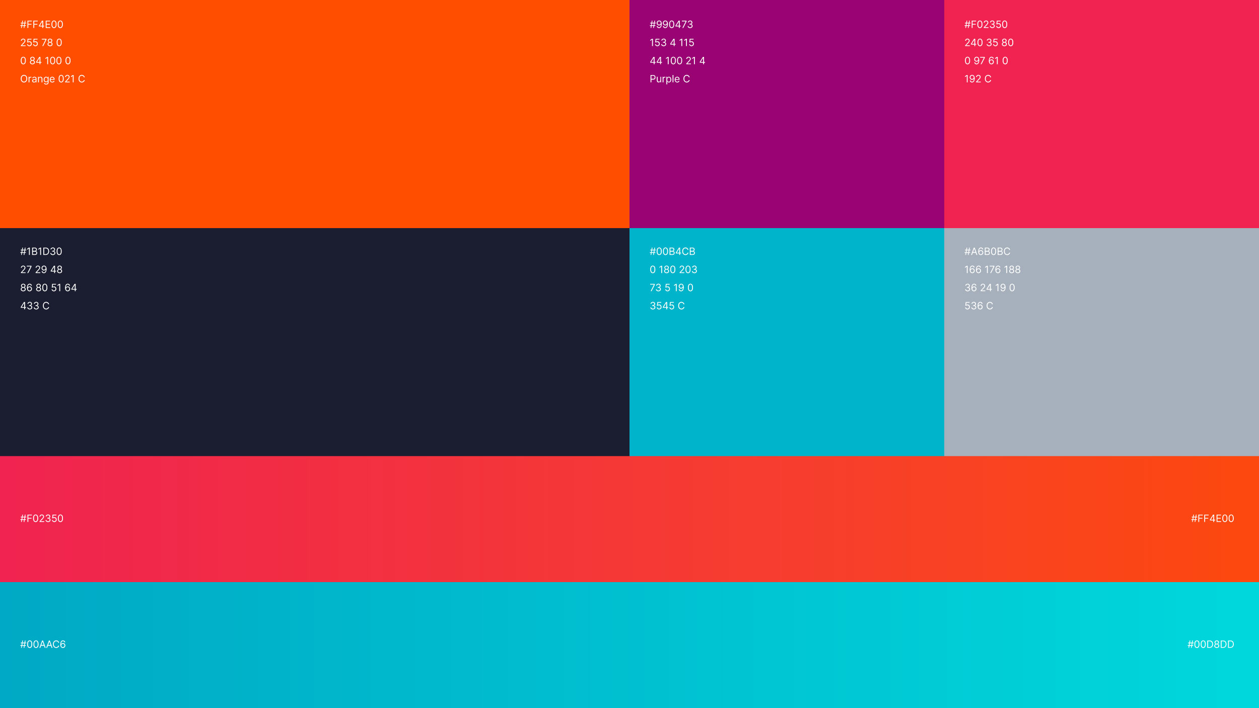 We used a typeface optimized for onscreen viewing, and selected a bright palette with gradients in proactive orange and energizing teal to pump the whole set into mind/body/brand harmony.