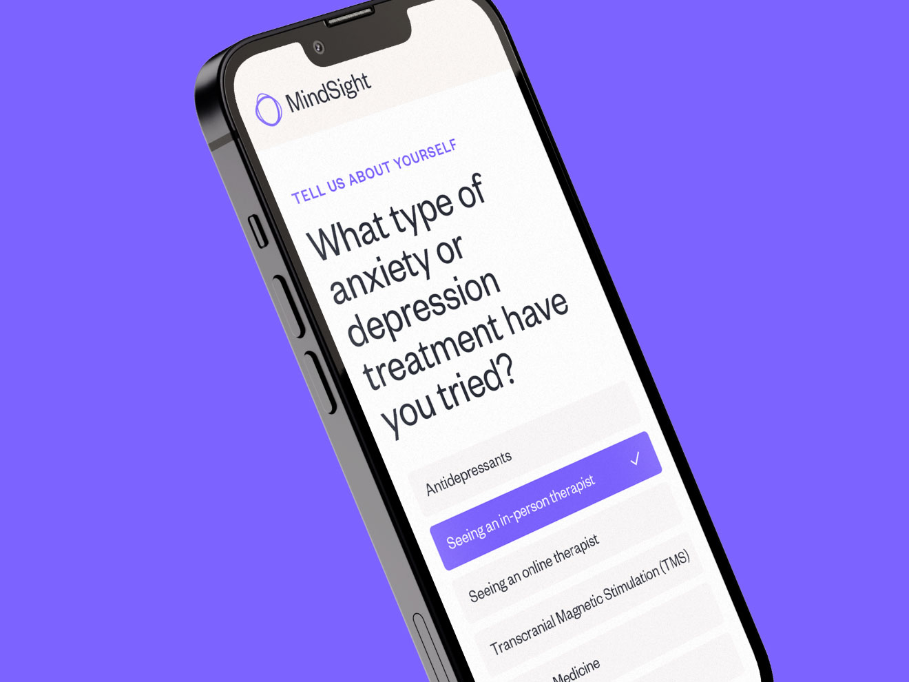 The team behind MindSight approached us in the earliest stages of conceptual development. With a rising mental health epidemic and a reported 1 in 5 Americans living with mental illness, the opportunity for innovation in the testing space was huge. They wanted to create a product and brand in unison that would help to take mental health testing and diagnosis into the 21st century.