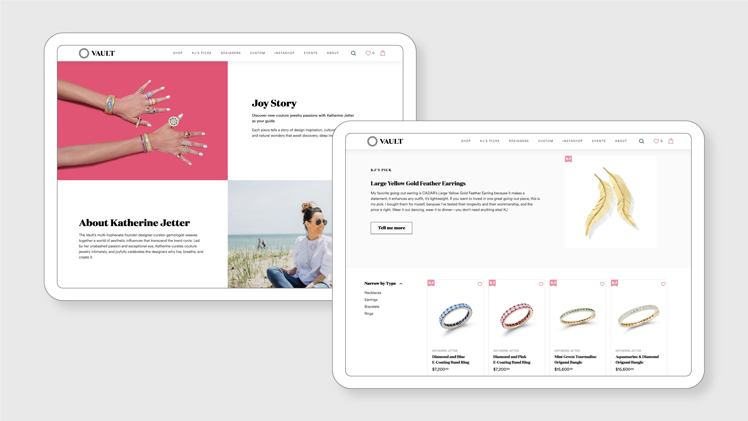 Known for her inviting personality and exceptional eye, Katherine Jetter made it her mission to help her loyal Nantucket following experience couture jewelry and rare gems intimately. So when she launched the brand’s first e-commerce website, she needed help translating a uniquely tactile and emotional brand experience into an online store that truly felt like the vault.